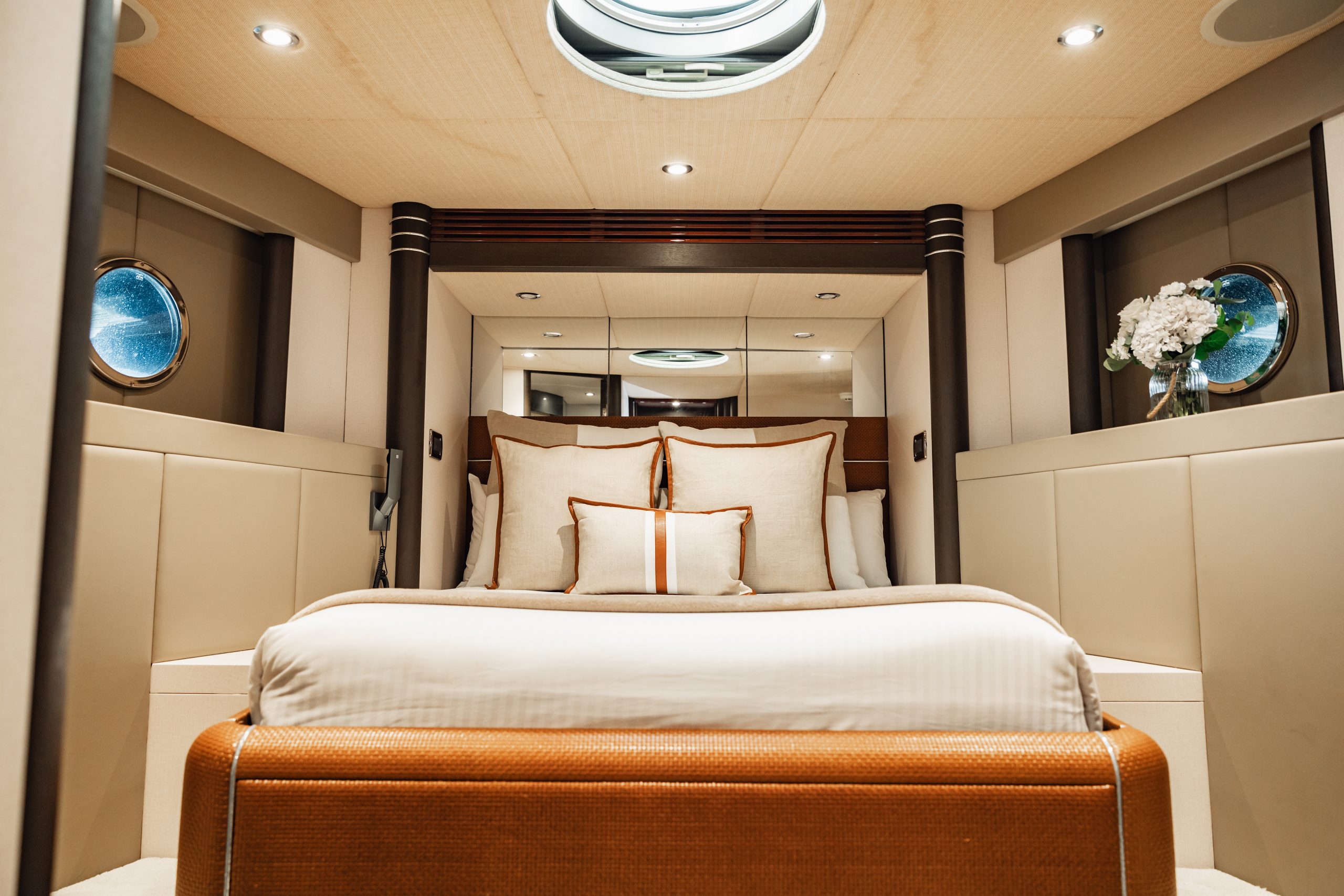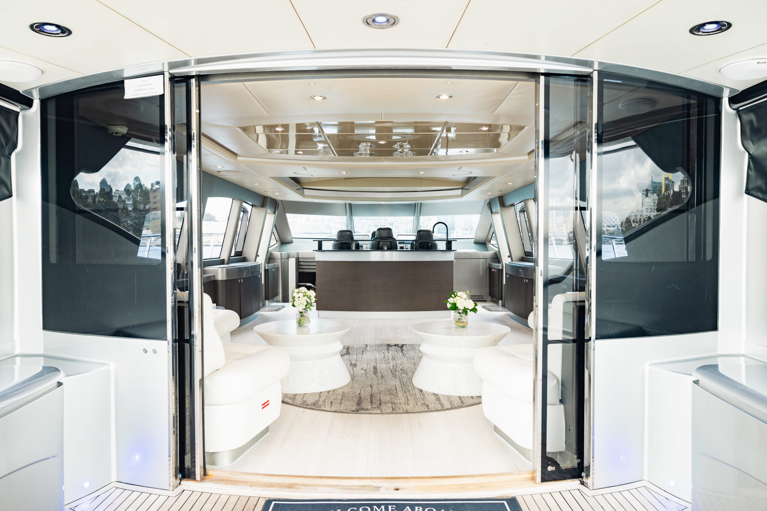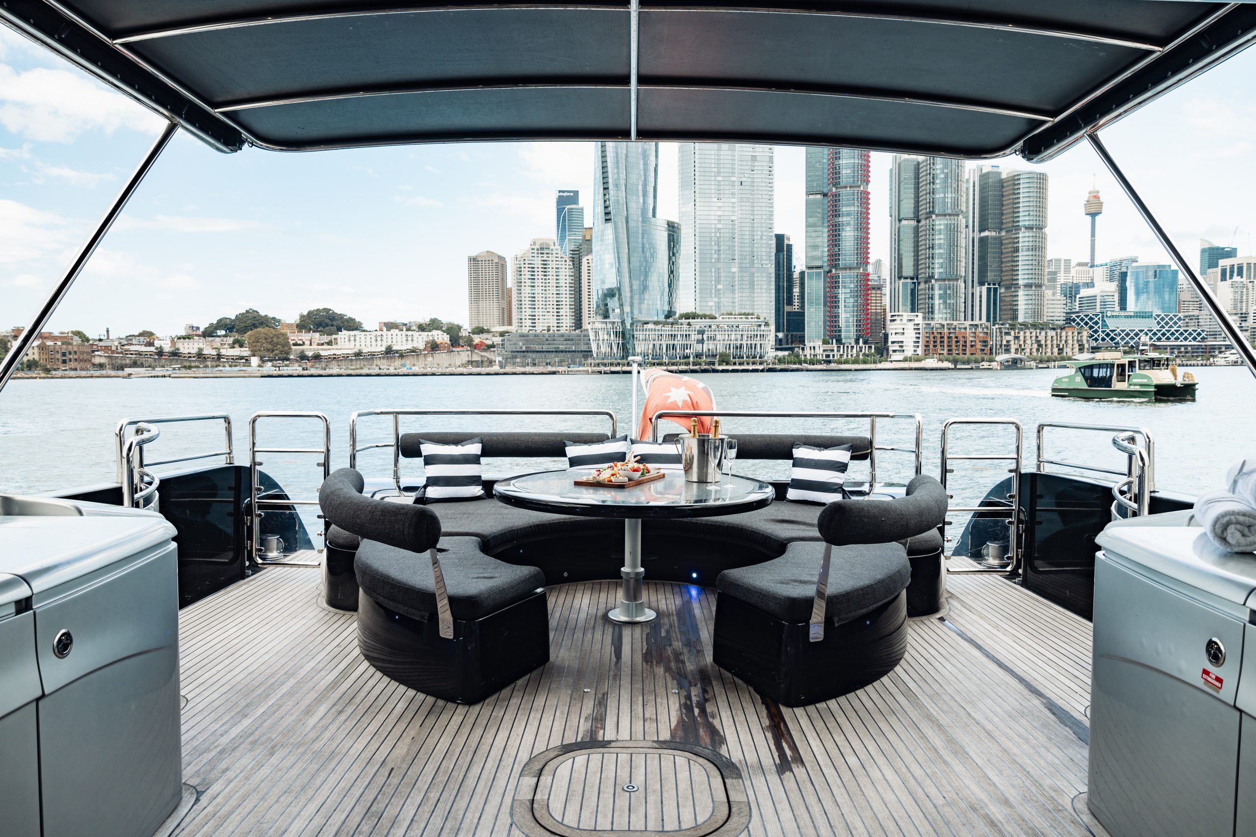 The aft deck boasts a large alfresco dining area and lounge with staircases leading to an enticing swim platform. The open plan galley allows guests to enjoy the private chef’s expertise while relaxing on the large leather lounge. Four luxurious bedrooms, Three full bathrooms, and one huge bow daybed providing 360-degree views of Sydney and its Harbour.